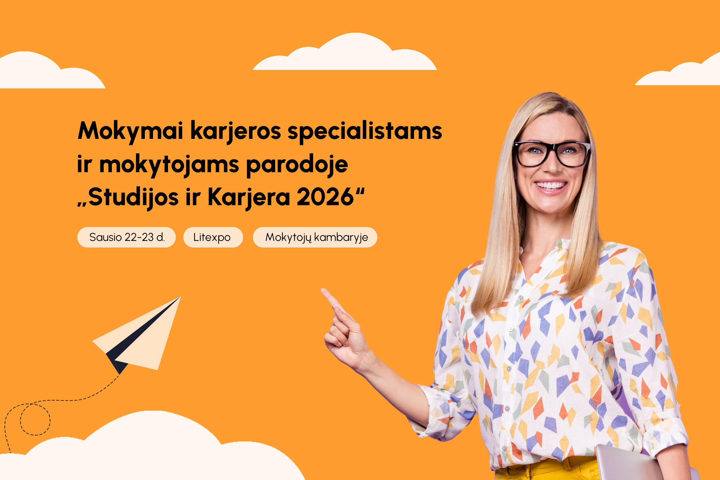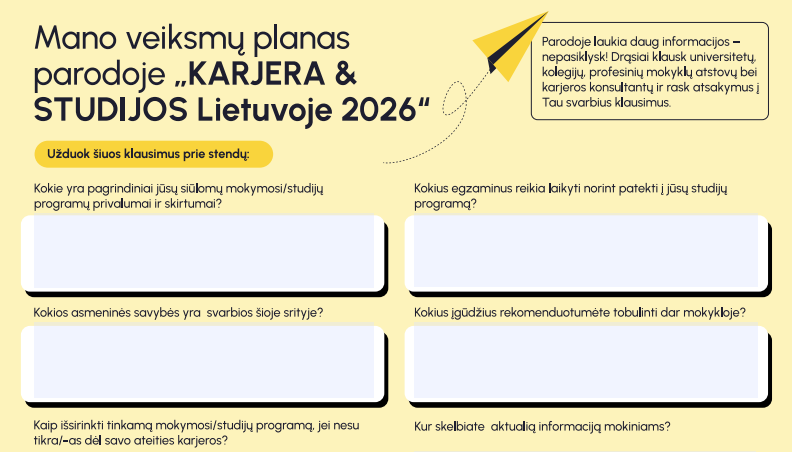 LINEŠA kartu su LITEXPO kviečia karjeros specialistus ir mokytojus, dirbančius su 9-12 kl. mokiniais, registruotis į praktinius mokymus, vyksiančius parodos „Studijos ir Karjera 2026“ metu, sausio 22–23 d. Mokytojų kambaryje.